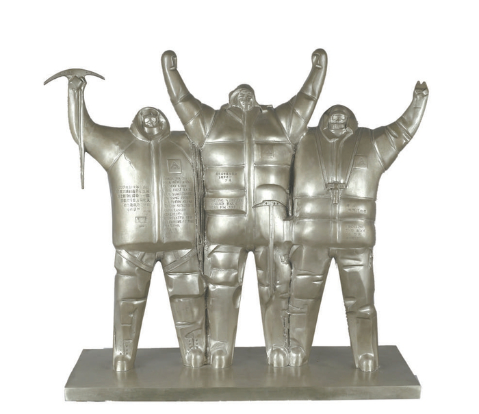1990年,广州美术学院雕塑家黎明,根据1988年5月中国、日本和尼泊尔登山队联合登顶世界最高峰珠穆朗玛峰,实现南北双跨会师的情景,创作了不锈钢材质雕塑《崛起》。雕塑受到1980年代以来现代主义语言风格的影响,以三位登山队员高举双手庆祝的造型为基础,构成山字,象征着人类团结一心、战胜困难的大无畏精神。1996年,倡导“写意雕塑”理论的南京师范大学教授吴为山创作了小雕塑《平衡——滑雪者》,相较于《崛起》的象征主义和纪念碑感,其雕塑更为强调手的触感,强调艺术家对滑雪者身体姿态的意象表现。