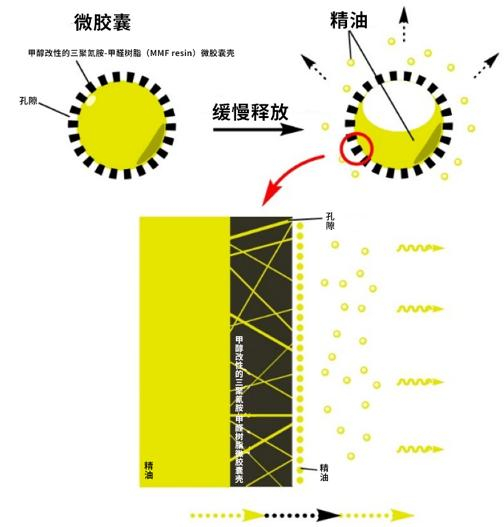 微胶囊把香味物质封存在微米级别的小胶囊里,胶囊本身也不会和香味物质发生反应,因此可以作为屏障,锁住里面的香味物质,防止香味快速挥发或是被氧化。