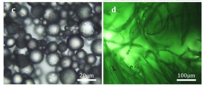 微胶囊的微观形貌(左)以及它附着在纤维上的样子丨参考文献[4]