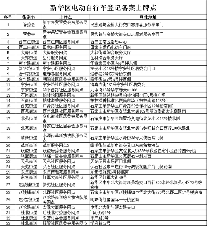 154个!石家庄电动自行车集中登记上牌点公布!