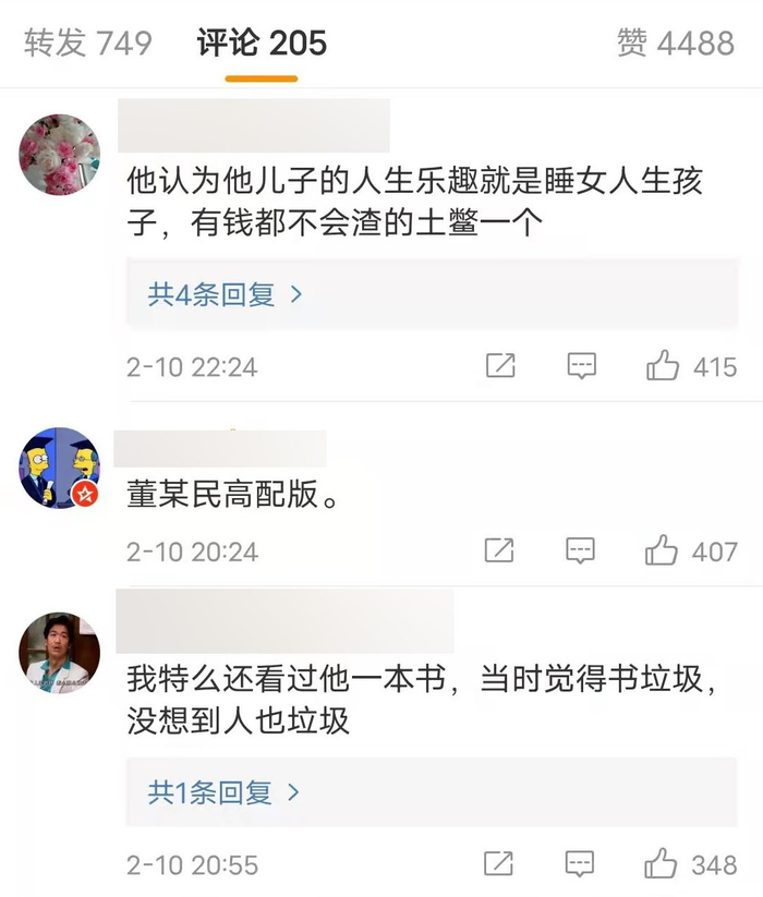 被曝光的言论很快点燃了网友怒火。有网友质疑,在丁鹏眼中,自己儿子的人生乐趣就是睡女人、生孩子?更有网友直言,丁鹏的“价值观真是一地碎。”