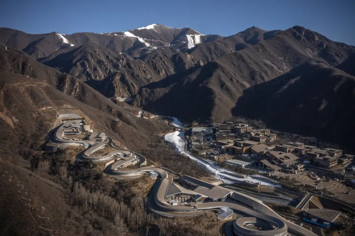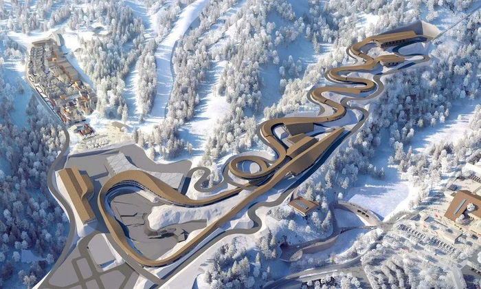 ▲钢架雪车赛道,赛道垂直落差达110米。