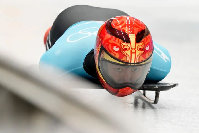 ▲中国选手黎禹汐在北京冬奥会女子钢架雪车项目比赛中。图源:新华社。