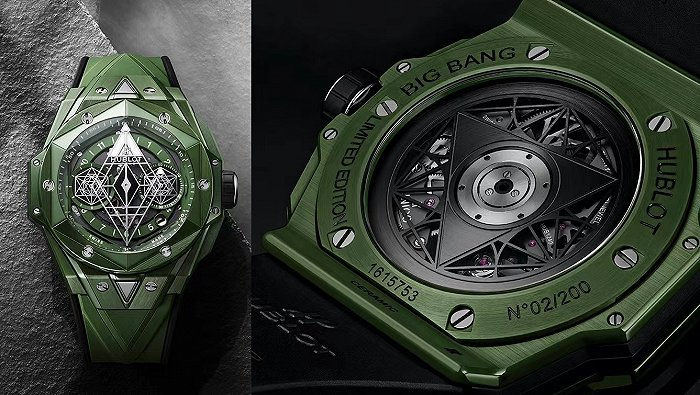 Big Bang Sang Blue II刺青腕表魔力金款限量典藏100枚,全黑陶瓷材质的黑色魔力款限量典藏250枚,而绿色陶瓷款则限量典藏200枚。