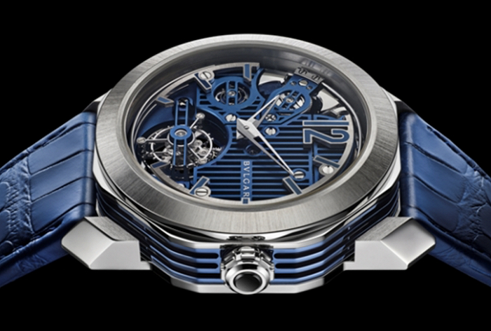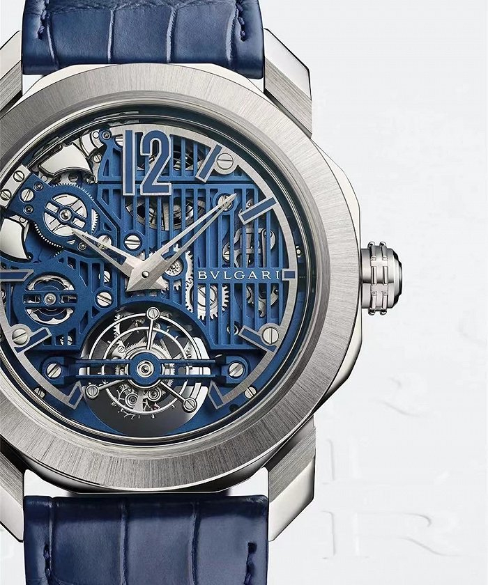 宝格丽在2011年3月被LVHM收购后成为其第二大股东。宝格丽擅长在腕表的设计和制作中加入品牌独有的珠宝工艺。每只珠宝腕表的宝石由位于意大利Valenza的宝格丽珠宝制造工厂或是罗马的高级珠宝工坊制作和提供。而宝格丽从不墨守陈规,这从Octo Roma钟乐三问陀飞轮蓝色腕表便可见一斑。这款采用高度现代的设计风格,配备陀飞轮和报时装置这两大经典复杂功能。