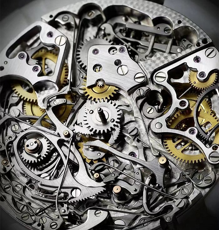 表壳宽大的比例设计有助于确保理想的声音传播效果,腕表通过三音锤敲击发出三种音调,其旋律序列为:低音鸣报小时,高低合音鸣报刻钟,高音鸣报余下的分钟。报时装置由表壳左侧的按钮启动。表壳侧面经巧思设计,帮助增大声量及增强声音传播。其镂空设计可减少内外部之间金属的使用量。表壳侧面的三个开孔分别对应三个音簧,意在使声音从腕表内部向外传播。