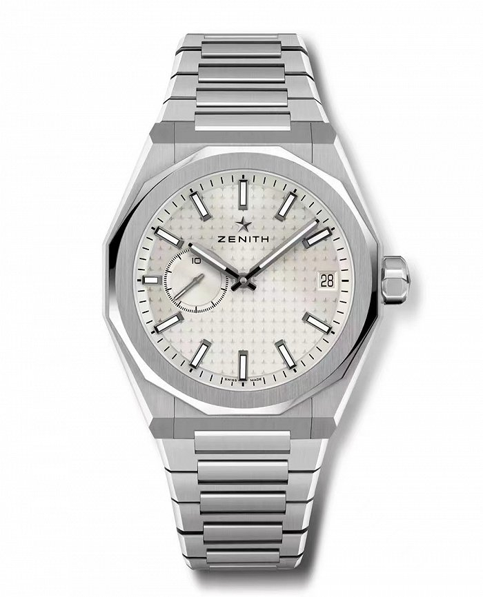 腕表采用41毫米直径精钢表壳,搭配与早期DEFY系列表款类似的刻面表圈,线条简约利落,经重新设计的十二边造型用于为时标定位。点缀星形标志的旋入式表冠确保腕表尽可能在大部分活动和情况下保持卓越性能,防水深度达10 ATM(100米)。