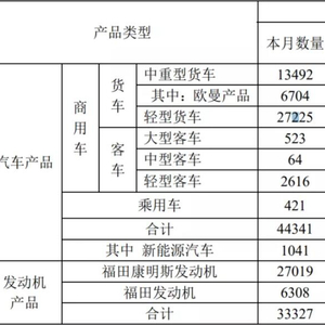 商用车的销量主要来自重卡、轻卡和轻客等业务,这些细分车型在1月份的表现如何呢?下面,我们就一起来看福田汽车旗下欧曼品牌中重卡、奥铃轻卡、欧辉客车、康明斯发动机等产品的市场表现吧!