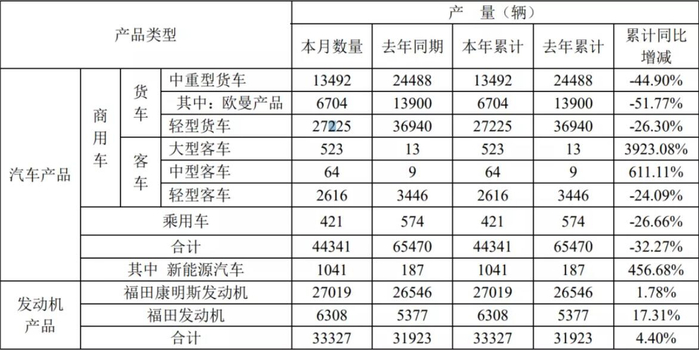 1月份,福田销售轻卡(含欧马可、奥铃、时代等子品牌)28584辆,同比下降22.76%。