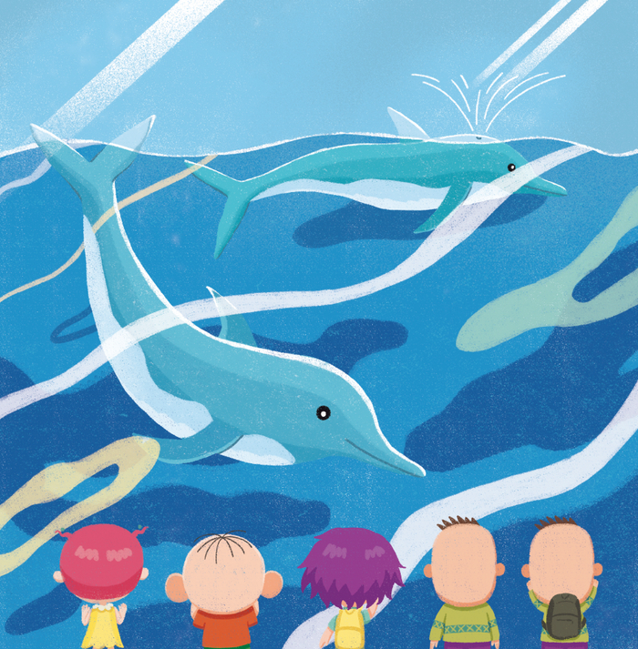 海豚只有一个鼻孔,长在头顶上。海豚在水中游一段时间后,就会浮出水面,吸进新鲜空气;再潜水时,便紧闭鼻孔,避免水进入肺部;潜入水下后,开始慢慢呼出。海豚喷出的水柱就是它在换气时产生的。
