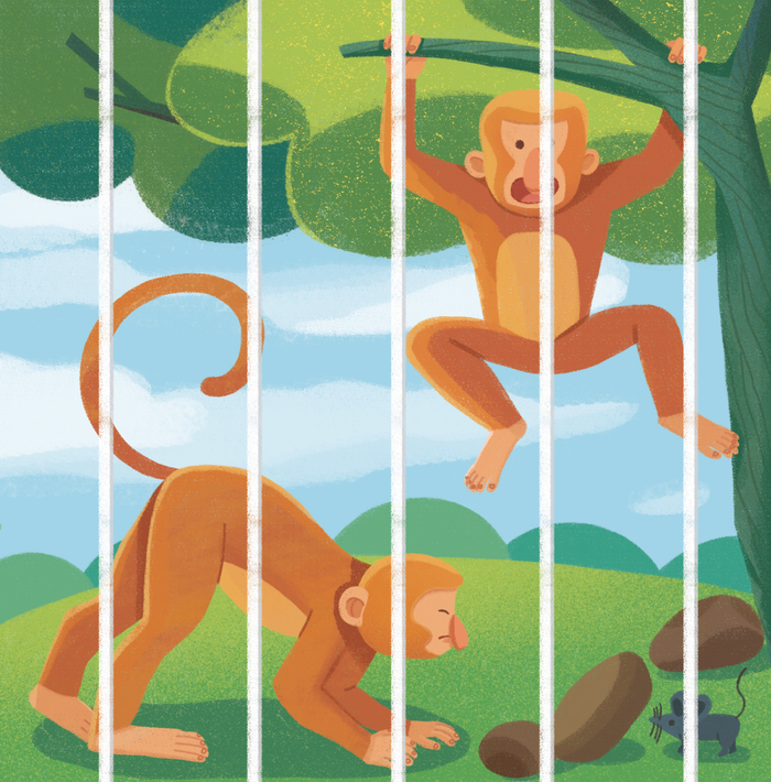 长鼻猴的鼻子不仅能闻到猛兽的味道,还是很好的共鸣器。遇到危险时,它们的鼻子会像扩音器一样发出尖锐的警报声。