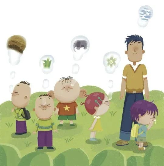 图图还提议进行闻味道比赛,看谁闻到的味道种类多。