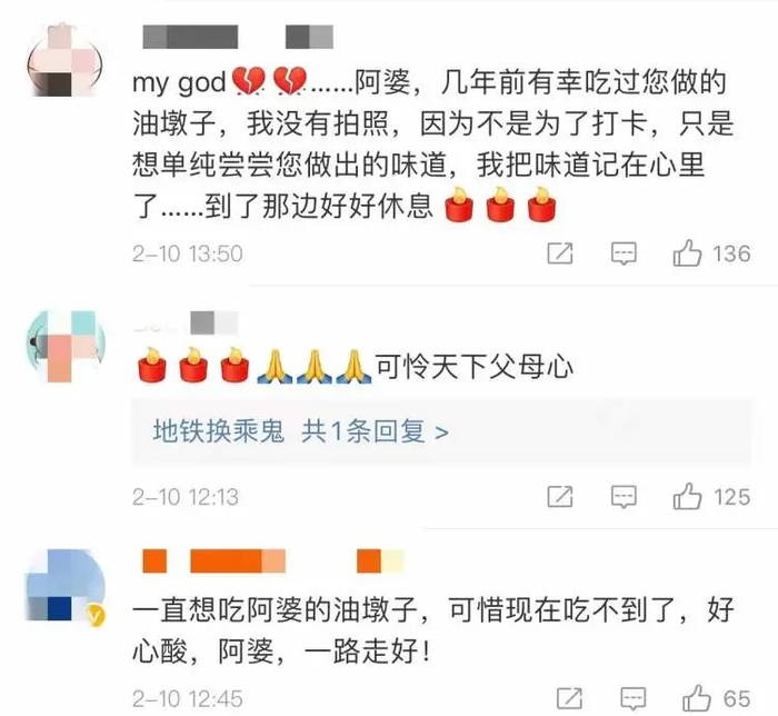 何老先生:其实一直不是很好,腰痛啊什么的也舍不得花钱看病,一直是带病做油墩子。后来实在吃不消了,就把店关了。最后在医院住了2个月,2月8号走掉了。
