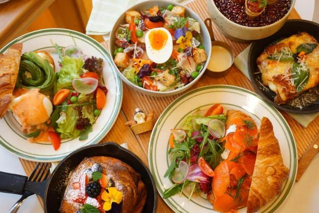 除了有品牌招牌的日式厚吐司等面包三明治外,店内还有主推健康理念的荞麦罗勒猫耳面、金枪鱼鲑鱼籽牛油果拌饭等轻餐主食,有营养且热量低的低温鸡肉培根沙拉、牛排沙拉等小食,以及花椒拿破仑等创意甜品。