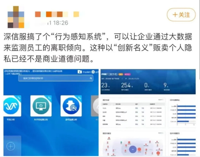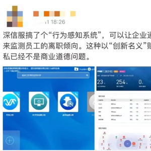 对于深信服的产品,有人在社交平台留言称,“深信服就是专门帮助公司监控员工行为的一家公司”。同时,有人质疑相关公司的做法涉嫌侵犯员工的隐私。