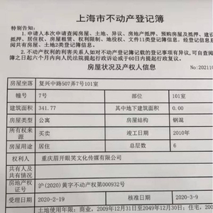 在爆料文章中,一张于2021年11月1日打印的上海市不动产登记簿显示,张杰谢娜夫妇购买的房源面积达341.77平方米,竣工时间为2010年,成交价格5920万元,房屋权利人为“重庆眉开眼笑文化传媒有限公司”。《华夏时报》记者在“天眼查”平台看到,重庆眉开眼笑文化传媒有限公司成立于2019年10月15日,谢娜在该公司持股99%并担任监事,为疑似实际控制人。