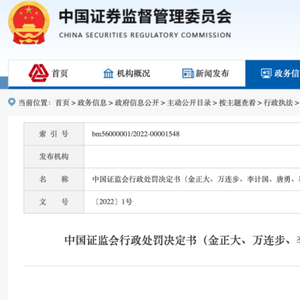 同日披露的市场禁入决定书显示,证监会决定对万连步采取10年市场禁入措施,对李计国采取5年市场禁入措施,对唐勇采取3年市场禁入措施。