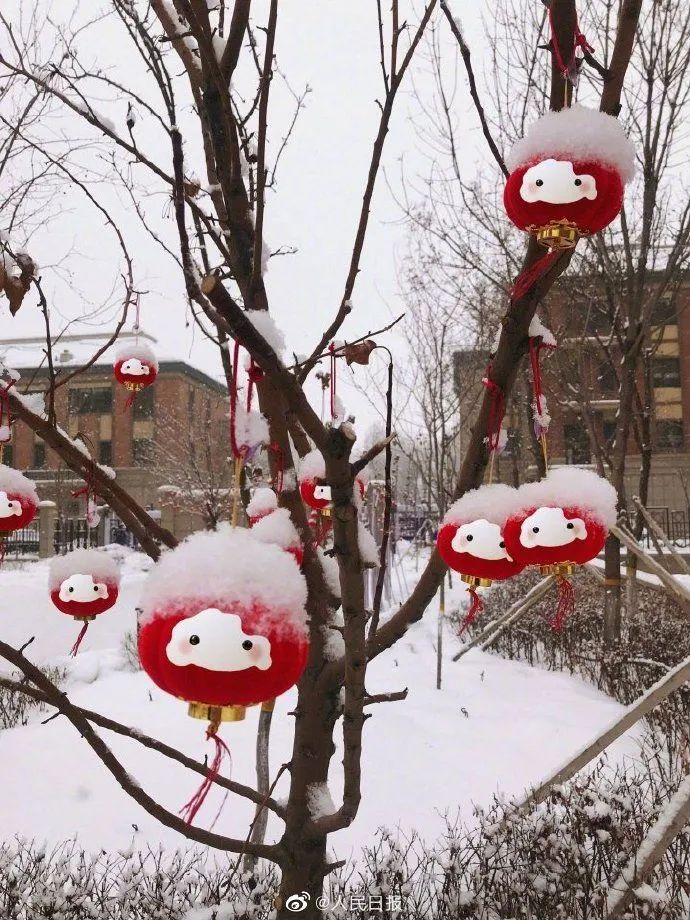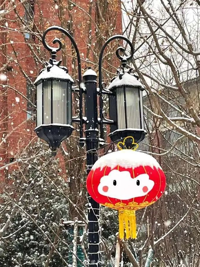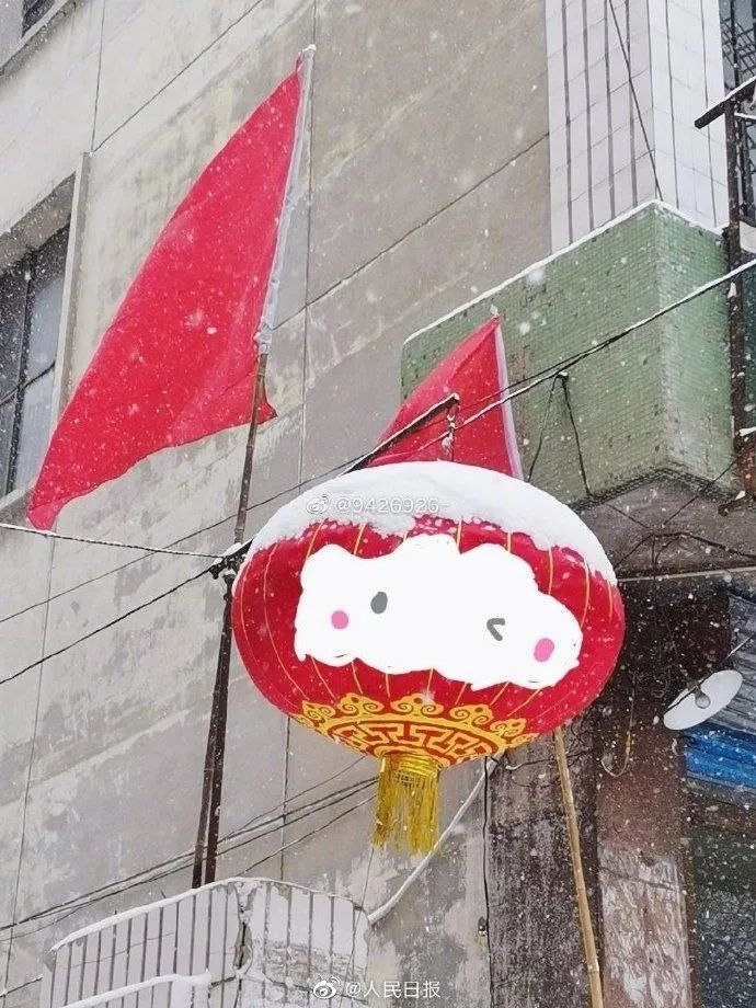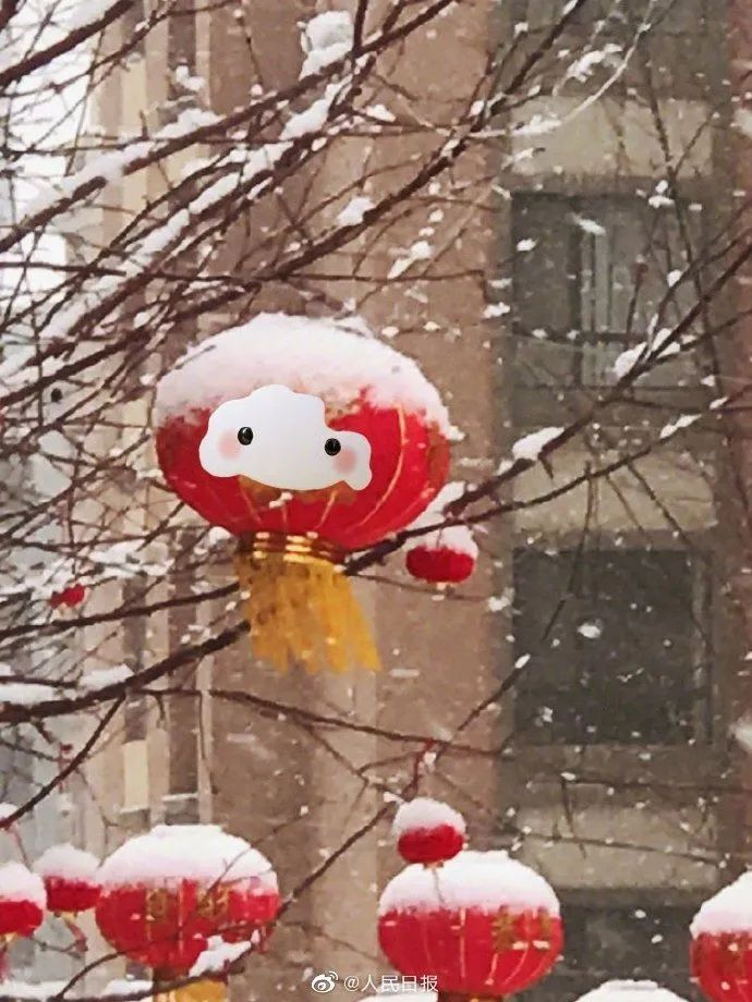 当灯笼遇见下雪天,秒变萌萌哒雪容融。网友P图野生雪容融,好可爱!