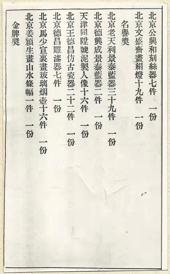 第三,参加国际赛事赢得更大声誉。早在张明山的时代,泥人张彩塑就已被在华西人关注。据载,张明山与津门画家刘小宇去上海时,每次都会带去许多作品待价而沽。“抵沪后,西人多来参观,门户为穿。素为中国艺术抛弃的泥人工匠,竟受西人崇拜,欲聘往外国,张以年迈推辞。后皇会一套由西人出巨资购去。”皇会,又称“天后圣会”,是天津规模盛大,汇集各种表演的迎神赛会。泥人张的皇会泥塑,共有三百余个形态各异的人物,以及宫桥伞扇等赛会道具,极致精巧,洋洋大观。《津门杂记》也有记载“西洋人曾以重金购之,置博物院中,供人观赏。”1915年,泥人张的16件作品参展巴拿马万国博览会,并获得“名誉奖”。 民国时期的天津是北方商贸金融中心,中外游人如织。有了国际奖项的背书,泥人张的销售推广也更有说服力,几乎成了游客到天津的必购名产。徐悲鸿先生去同升号买泥人时,“肆主言美国赛会,此类货物, 如何获得荣誉,洋人之如何喜欢称赏,凡来天津,无不购者。吾乃照洋人之例,凡购卖糖者一、卖糕者二、卖卦者一、胖和尚二,欣然南归。”可见,徐悲鸿是听了店家的推销,购买了外国游客的常规“套餐”。