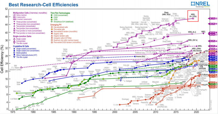 [17] NREL:Best Research-Cell Efficiency Chart https://www.nrel.gov/pv/cell-efficiency.html