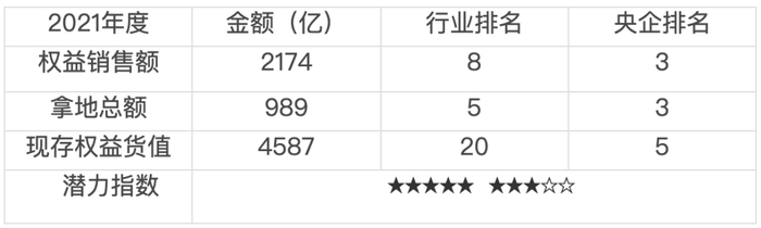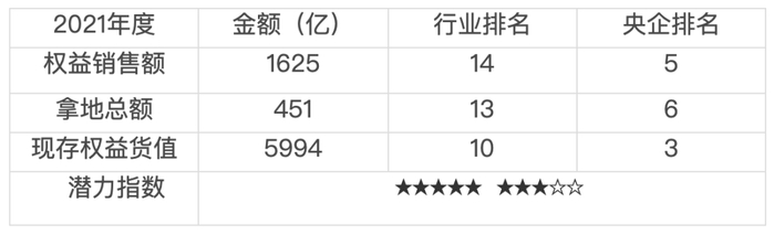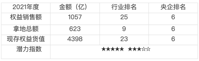 截至2021年上半年权益货值排行,中交房产2190亿>中旅地产1343亿>中冶置业1221亿>电建718亿>信达819亿。