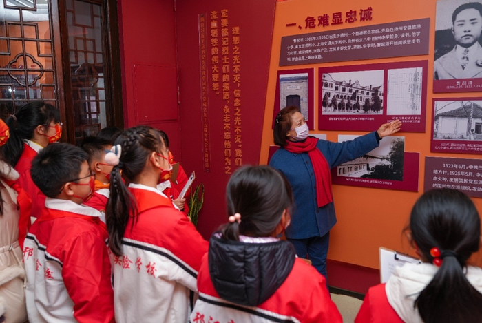 在曹起溍故居的文物中,队员们找到了答案。一名队员指着一张张照片说:“你们看,他不仅在扬州中学宣传进步思想,还深入到火柴厂、发电厂、黄包车工人中,建立、扩大党的基层组织。”另一名队员指着展柜中的杂志说:“他创办了《卧薪尝胆》《红旗》等进步刊物,以此启发民智,推动革命事业的发展。”