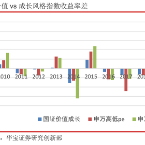 我们以国证价值指数vs国证成长指数,申万低市盈率指数vs申万高市盈率指数,申万低市净率指数vs申万高市净率指数分别表征价值vs成长风格,并统计历年的收益率差值。