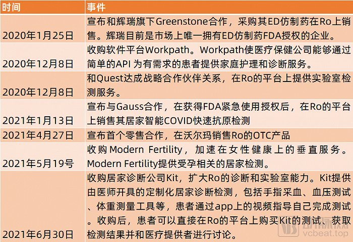 3、通过合作、收购等活动持续增强业务能力。在过去的两年中,Ro达成了4项合作和3项收购,动脉网梳理如下。