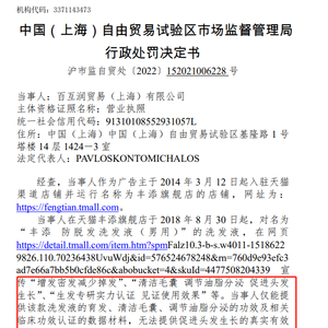 青眼从国家企业信用信息公示系统官网获悉,丰添洗发液关联公司百互润贸易(上海)有限公司(以下简称为“百互润”)新增一条行政处罚信息,因其在广告中宣传“生发”等功能,被罚款10万元。