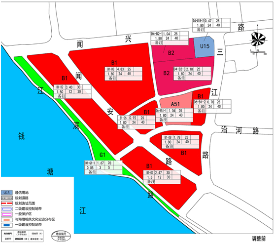 3.沿江绿化带的面积增加,形成了一个沿江公园,大幅度提升了区域环境。原控规中涉及的通信用地((U15)、医院用地(AS1)结合闻堰南单元和闻堰北单元在编控规整体予以落实。