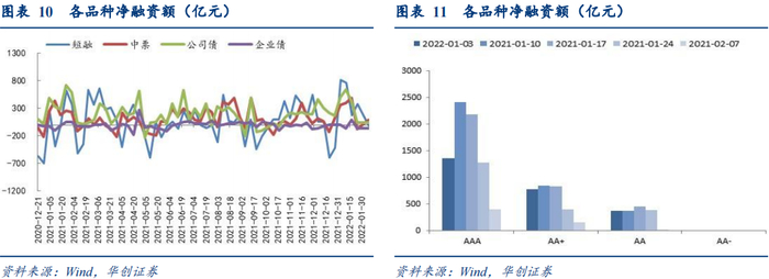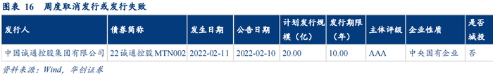 本周信用债发行规模616.80亿元,较上周降低1526.46亿元,净融资额47.11亿元,较上周下降202.16亿元。分品种来看,公司债、中票和企业债的净融资额分别上升至40.96亿元、95.95亿元和-57.72亿元,短融净融资额下降至-23.30亿元。等级方面,AAA和AA+级的发行占比上升至69.20%和26.11%,AA级的发行占比下降至4.68%。期限方面,1-3年、3-5年的发行占比分别下降至14.85%、21.90%,1年以内的发行占比上升至63.25%。企业性质方面,地方国企的发行占比下降至54.17%,央企、民企的发行占比分别上升至41.60%、4.23%。行业方面,综合、建筑装饰、公用事业等行业发行较为活跃。