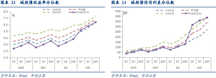 整体看,3131家城投主体数量较多,具体择券时,对于风险偏好低的机构,可在公益属性偏强或者业务类型为传统城投、交通投资以及水务投资的平台中进行重点选择;区域方面,对于经济活力较强、且土地价值相对高的长三角、珠三角以及成渝经济圈我们认为具备一定的收益挖掘价值;级别的考虑方面,通常隐含评级AA+及以上等级的主体安全属性较为突出。
