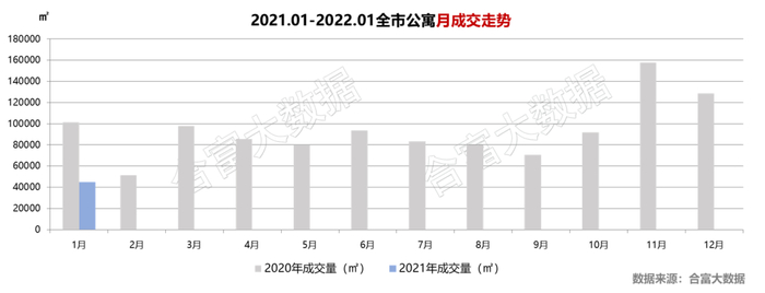 公寓市场方面,合富大数据录得1月公寓成交量为45030㎡,同比下降56%,环比下降65%;新年前后一般为淡季市场,整体成交量偏低。新增供应方面,1月公寓新增供应近3万㎡,主要来自碧桂园长盛汇及中洲紫轩。