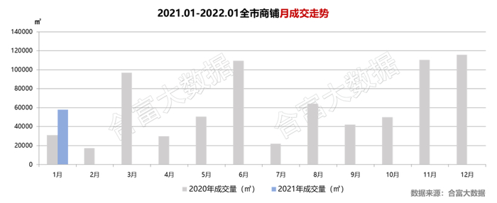 合富大数据显示,广州商铺市场1月成交量为57761㎡,同比上升85%,环比下降50%;由于有大宗交易支撑,近6万㎡成交量横向对比并不算淡静。新增供应方面,1月新增供应1万㎡,来自9个项目。