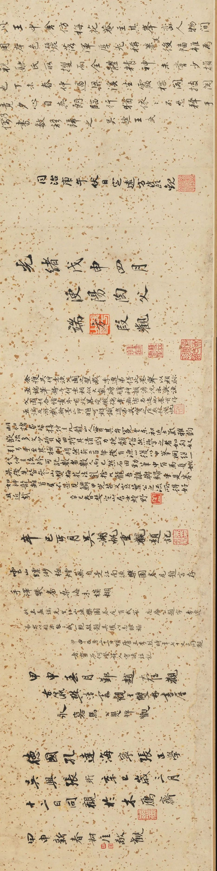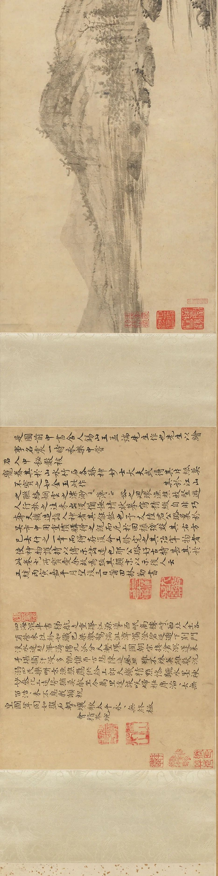 董其昌在1619年为好友吴正志画下此卷,两人在1589年一同通过了科考,又在随后的几十年中,彼此密切关注。1611年,吴经过一次次贬职后打算隐退,于是董其昌为其绘下此作。