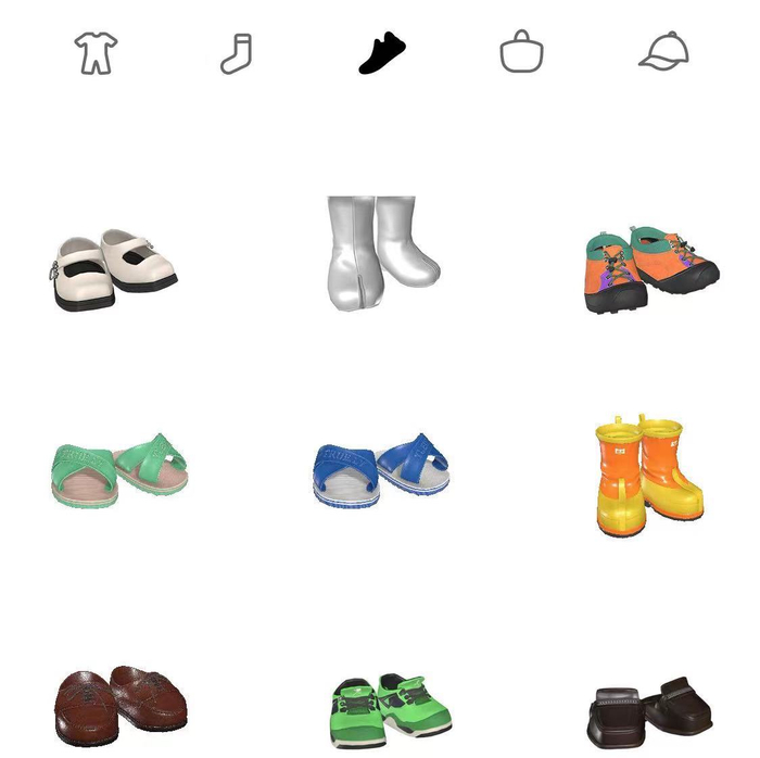 界面时尚在注册啫喱账号后也发现,部分角色装扮配件与当前大火的时尚品牌单品类似,其中包括葆蝶家的橡胶切尔西长靴、马吉拉的分趾鞋、三原康裕的溶解贝壳头运动鞋,以及By Far的Miranda手提袋。