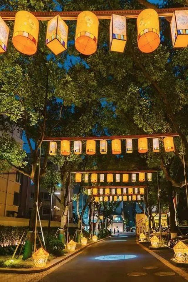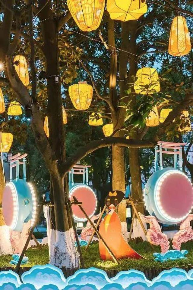 唐风门头、上百中式灯笼、唐朝月舞造型灯光、超萌Q版唐人IP形象艺术装置……