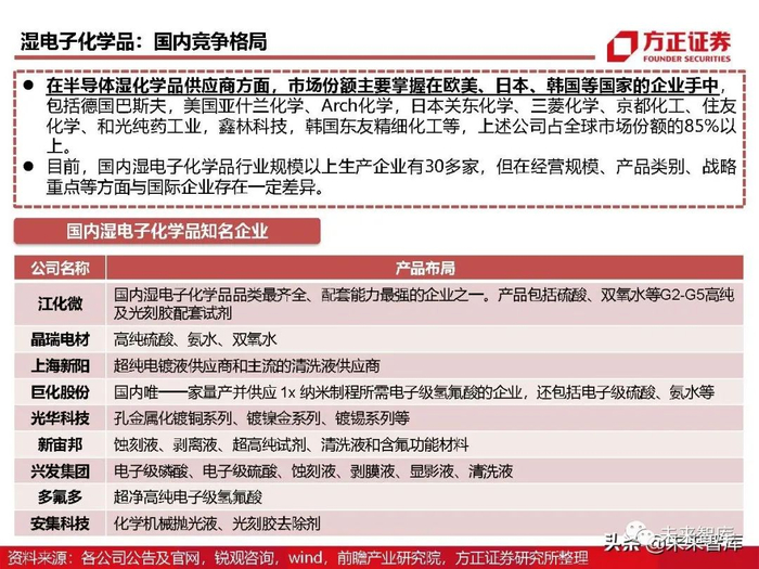 湿电子化学品:需求以通用湿电子为主