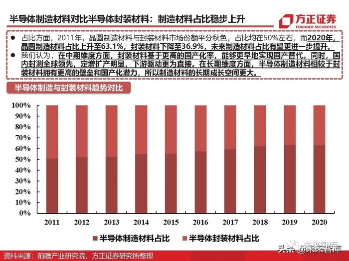 半导体制造材料对比半导体封装材料:制造材料占比稳步上升