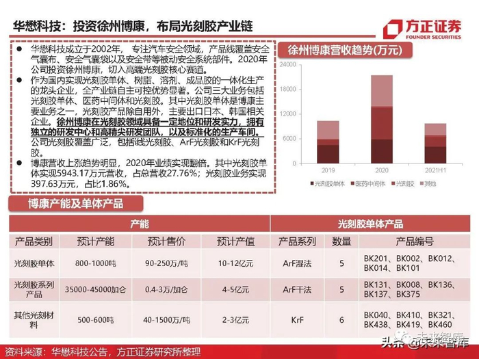 KrF、ArF为主流:根据美国半导体产业协会SIA数据,2018年高端ArF干式和浸没式光刻胶共占42%的市场份额 ,KrF光刻胶和 g 线/i 线光刻胶各占 22%和 24%的市场份额。目前,ArF光刻胶已成为集成 电路制造领域需求量最大的光刻胶产品,随着未来集成电路产业的进一步发展,ArF和KrF光 刻胶面临广阔的市场机遇。