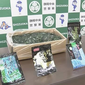 被静冈县警没收的外国产裙带菜 照片于2月15日上午摄于静冈中央警察署(图自NHK)