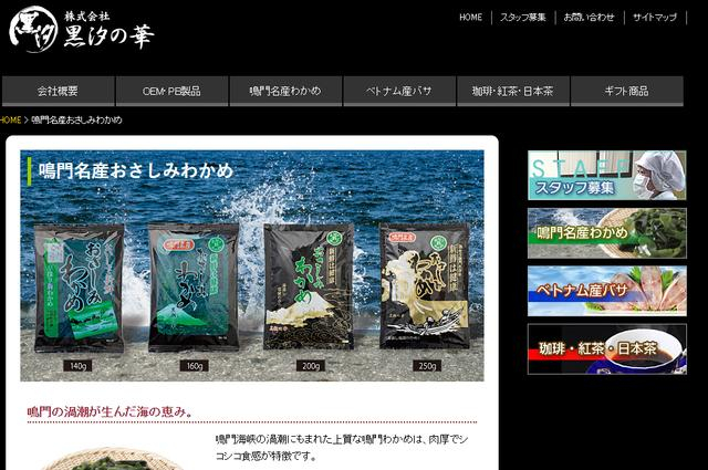 据当地媒体《你的静冈新闻》的深度报道,黑汐之华贩卖名为“美味裙带菜”(おさしみわかめ)的焯水盐渍裙带菜产品。有关人士曾揭露,该公司工厂将从中国进口的裙带菜装入写着“鸣门产”的包装袋中。