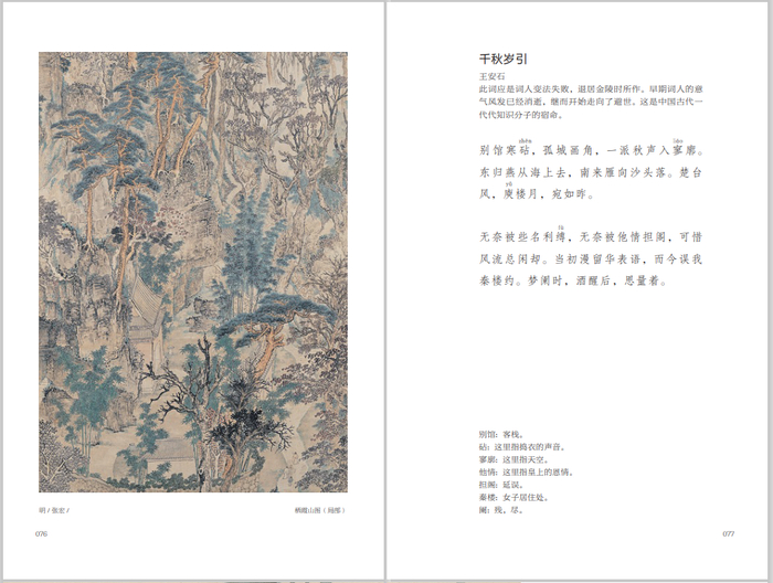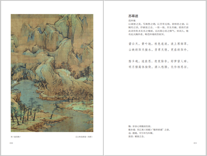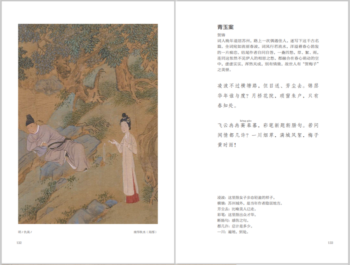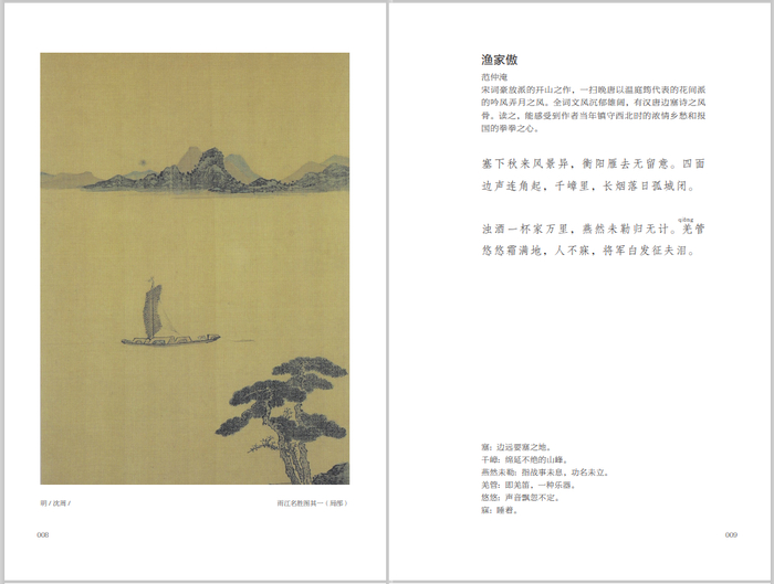 每首词配有独立名家插图,引人入胜,画与词呼应,搭配写景的词更能有身临其境之感,写作水平蹭蹭上涨。