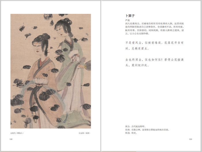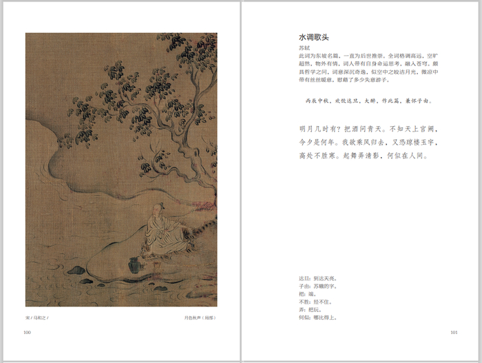 此版本《宋词》一共收入精选宋词近百首,涉及词人 50余家,精炼而全面地展示了宋词的风貌。