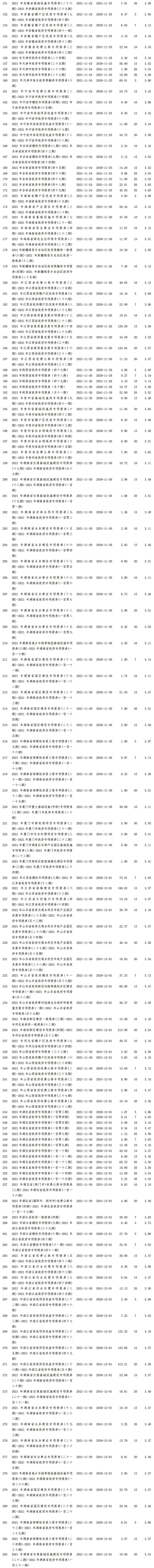 11月,全国31个省、自治区、直辖市、计划单列市1及新疆生产建设兵团2共发行地方政府债券283只,金额合计6,803.81亿元。具体情况如下: