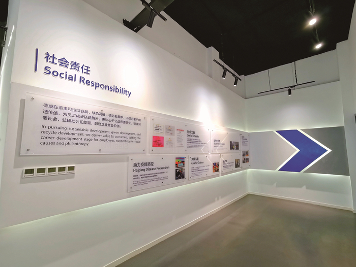 2018年,德威在湖州投资建设卡压水管生产项目,为了让更多百姓了解不锈钢卡压水管及其环保型、安全性,2020年,德威在新丰总部成立了“德立”不锈钢卡压水管品牌体验馆。