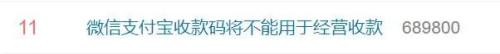 当时有消息称,“微信、支付宝收款码不能用于经营收款”。这一消息还一度冲上微博热搜。