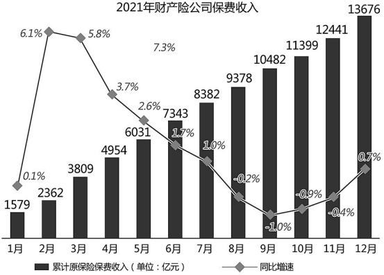 过去一年,财产险公司累计实现原保险保费收入1.37万亿元,同比增长0.7%。