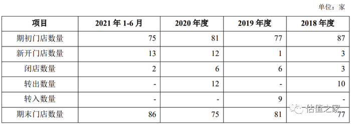直营连锁门店数量也在报告期内小幅波动,2018至2021年上半年仅增长了9家。