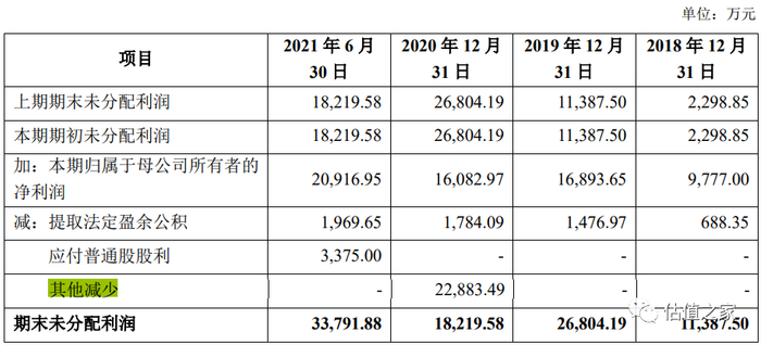 在未分配利润明细表中,我们可以看到2020年期末有一项“其他减少”扣减了2.29亿元。